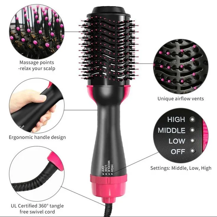 3-in-1 Function: Dryer, straightener, and volumizer brush in one tool.